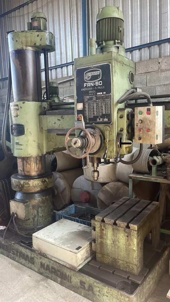 Furadeira radial da marca Nardini, modelo FRN 60. Máquina em ótimo estado de funcionamento. Deixamos ela funcionando.