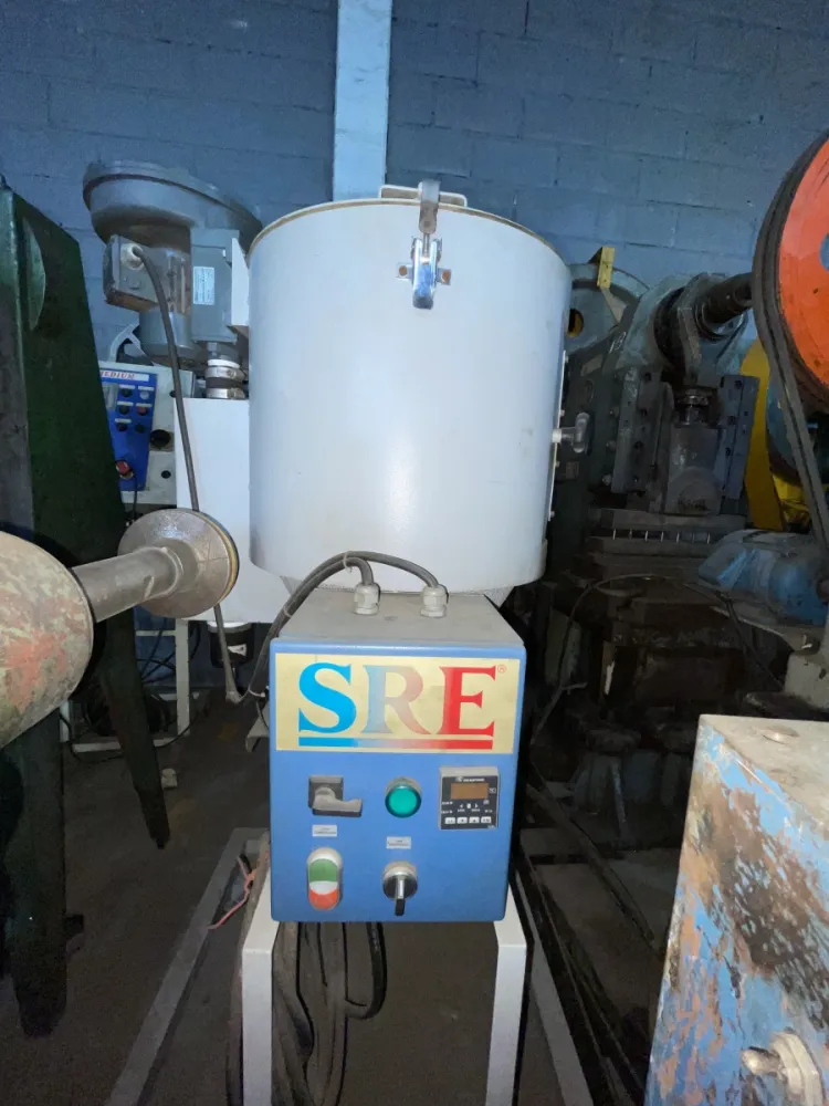 O Secador para Sopradora SRE é montado diretamente sobre o canhão da sopradora no lugar do funil. Dotado alimentador Automático, o Secador para Sopradora SREgarante o abastecimento controlado, com matéria prima aquecida na temperatura recomendada isento de umidade.
